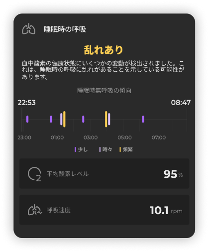互いの測定に影響を及ぼすことはないため、Apple Watchを含む他のウェアラブルデバイスと併用していただけます。なお、SOXAI RINGはAppleヘルスケアとのデータ連携も可能なので、日中はApple Watchを着用し、就寝時はSOXAI RINGを着用するといった使い方をしていただくことも可能です。