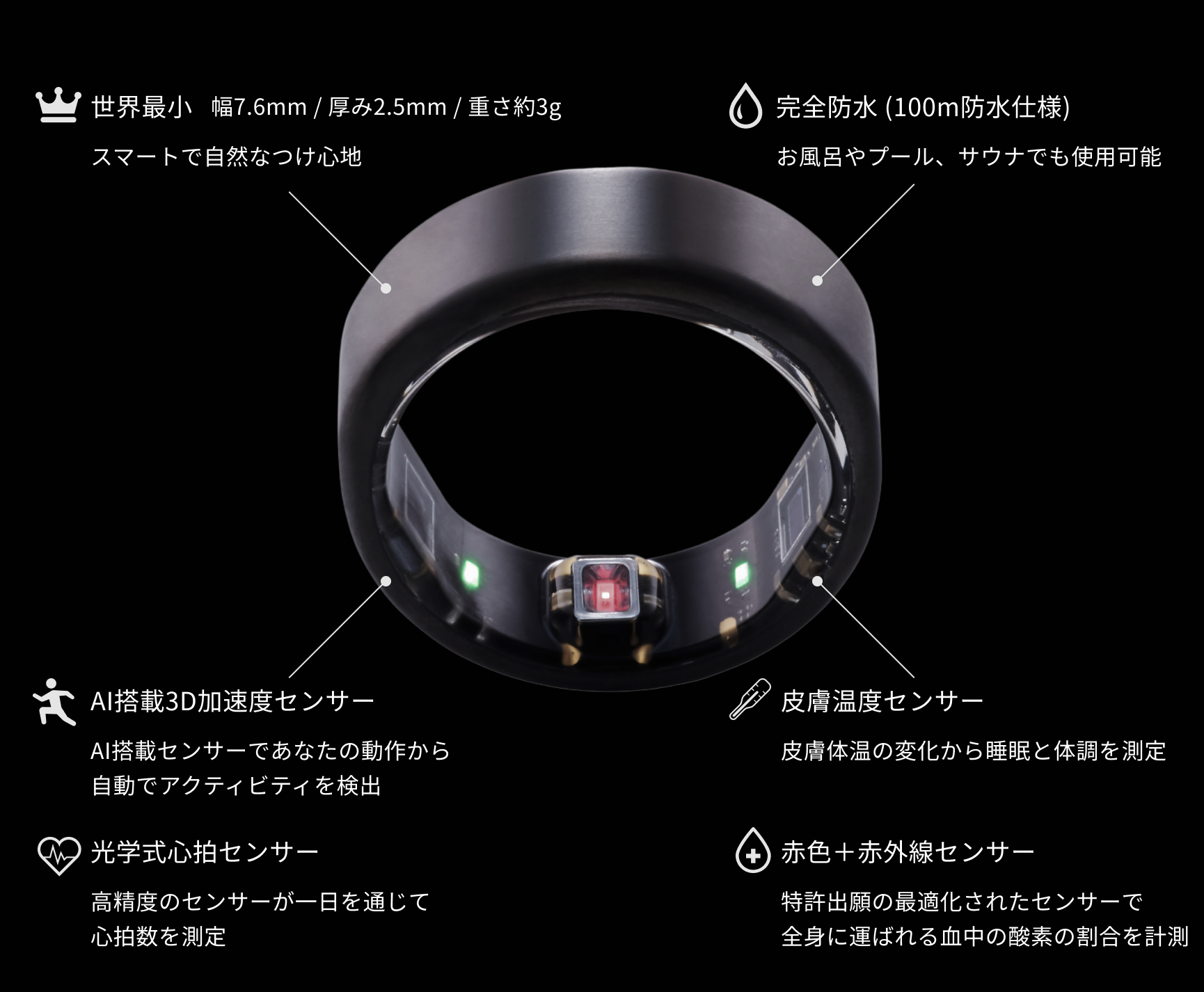 1を指にはめて下さい。これまでにない精度であなたの睡眠の質、活動、体調を採点・管理することで、最高のパフォーマンスがだせる生活習慣へ導きます。